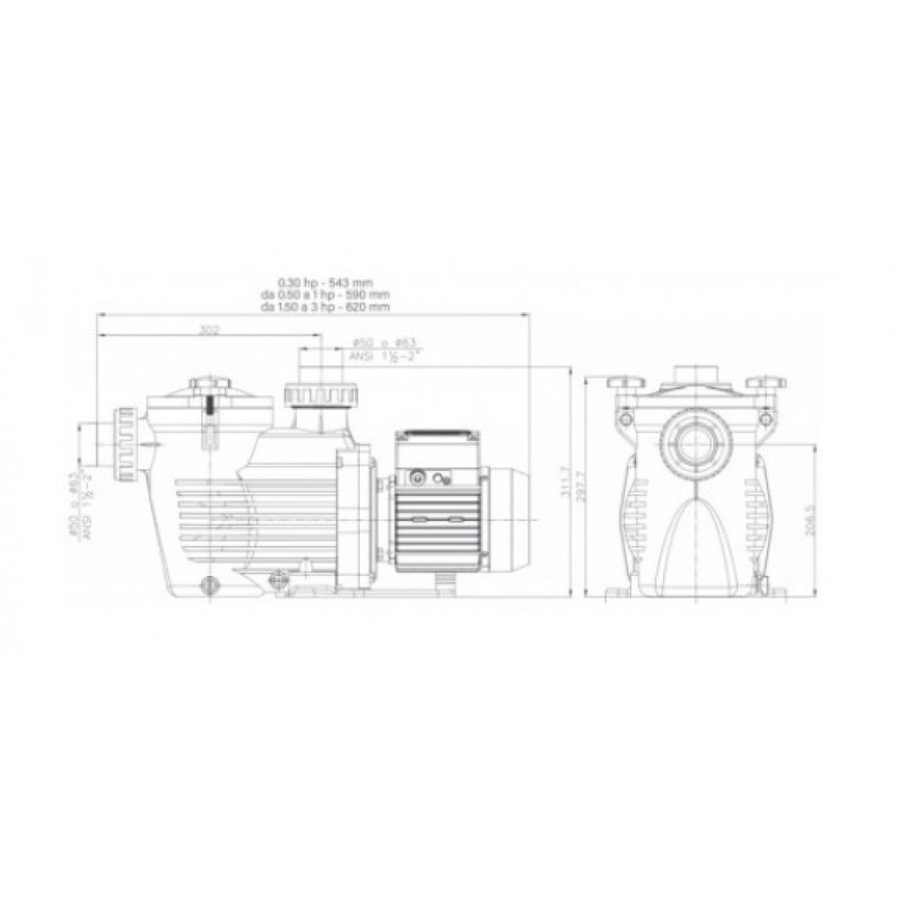 La tenuta meccanica in acciaio inox AISI 316 la rende adatta anche all'utilizzo con acqua di mare. Il sistema idraulico è ottimizzato e super silenzioso. Le sue alte prestazioni la rendono la pompa perfetta per piscine residenziali di piccole e medie dimensioni, fino a 198 m3, dai 0.3CV fino a 3CV, sia nella versione monofase, sia in quella trifase.