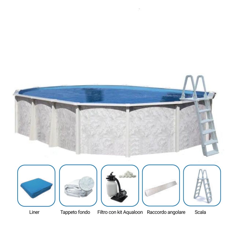 Il kit è composto da tutto il necessario per la posa e per il filtraggio dell'acqua. Le piscine sono fornite con istruzioni di montaggio in lingua inglese completa di illustrazioni passo - passo sul montaggio delle piscine.