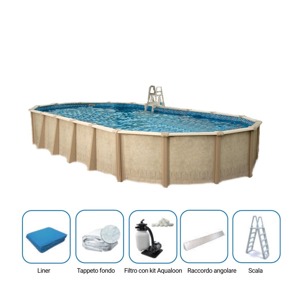 Piscina ovale fuori terra | Interrabile | Colore beige  | Misura esterna: 645 x 395 cm x h 132 ..